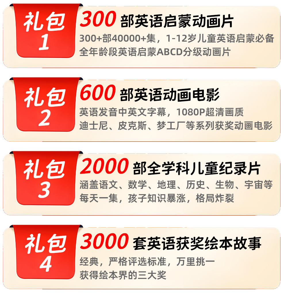 严选600部儿童英语动画电影早教启蒙英语动画片电子版视频音频台词下载
